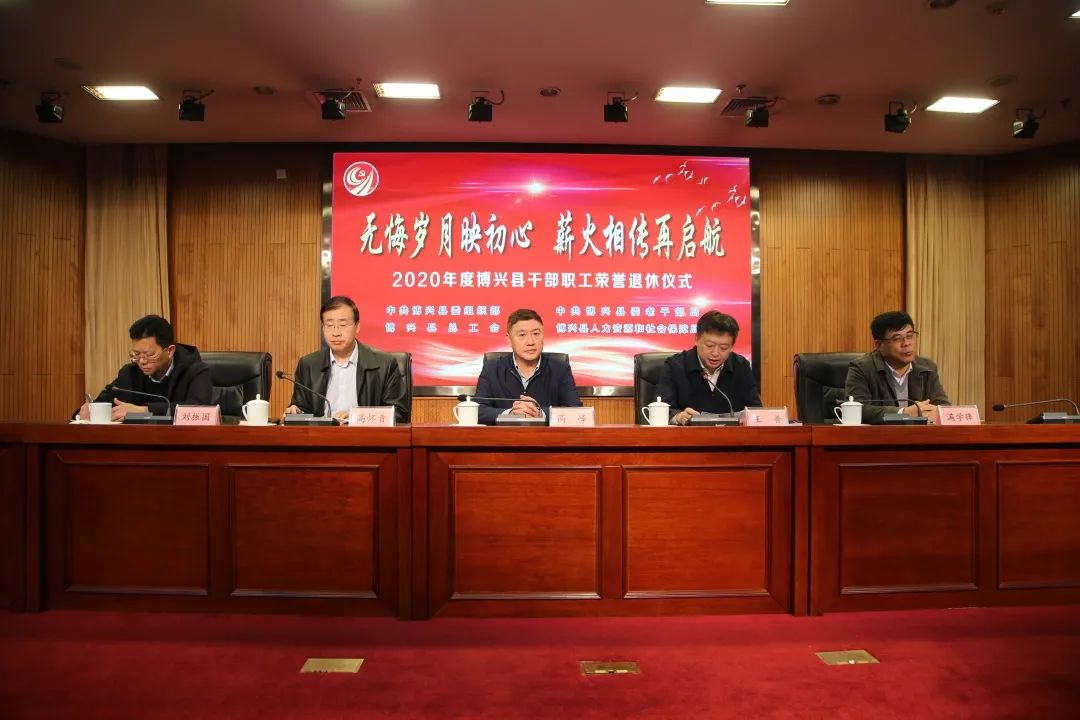 12月23日上午,滨州博兴县举办2020年度干部职工荣誉退休仪式。《老干部之家》杂志社社长高峰参加仪式,县委常委、组织部部长王普出席仪式并讲话,仪式由县委组织部副部长、老干部局局长高怀青主持,20名新退休县管干部、县人力资源和社会保障局、县总工会主要负责同志以及各单位老干部工作分管领导参加活动。