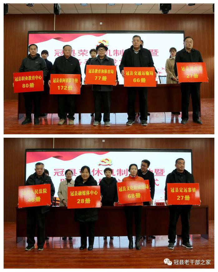 12月18日下午,聊城冠县干部荣誉退休制度启动暨《冠县离退休干部服务手册》发放仪式在县老年大学隆重举行,县委组织部副部长、老干部局局长刘冬出席仪式,全县离退休干部党支部书记,以及局机关全体干部职工参加活动。仪式由县委老干部局副局长徐振远主持。