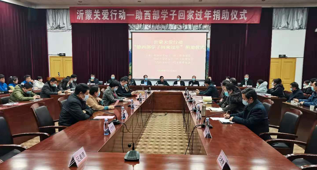 12月22日,临沂市关工委、临沂大学关工委、兰山区关工委联合举办第三届“沂蒙关爱行动—助西部学子回家过年”活动,协调爱心企业山东永恒建设集团有限公司、幸福树“四点半学校”捐资20万元,帮助100名西部省市优秀学生春节回家团聚,以实际行动贯彻落实党的十九届五中全会精神和习近平总书记重要批示及全国、全省关工委工作会议精神,进一步深化和升华了高校、地方协同开展关爱活动的临沂特色品牌。市关工委主任朱绍阳,临沂大学党委书记王焕良,临沂大学党委委员、副校长、关工委主任孙常生,市关工委副主任钱迎伟,临沂大学关工委常务副主任谢亚非,关工委副主任王明福,兰山区关工委主任谢华东,区委常委、宣传部长王辉等领导出席仪式。