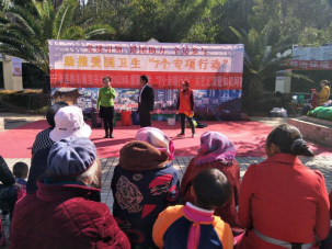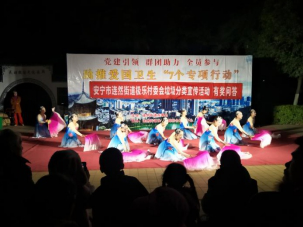 自8月16日,云南安宁市委市政府向全体市民发出“请全体市民积极行动起来,积极投身爱国卫生运动,共同营造洁净优美的居住环境、生活环境、工作环境,共筑我们美好的家园!”倡议后,安宁市年大学通过微信、工作信息等平台向学员通报工作情况,传达市委市政府决策部署,合力打赢爱国卫生“7个专项行动”“清垃圾、扫厕所、勤洗手、净餐馆、管集市、常消毒、众参与”全民之战。12月底,安宁市即将迎来云南省迎接省级考评,安宁市老年大学倡导学员们发挥自身优势全程参与宣传,唱响行动“主旋律”。就在全市巡演刚刚结束,12月14日至12月25日,安宁市老年大学部分学员又马不停蹄地参与连然街道组织的爱国卫生“7个专项行动”进螳川、宝兴、极乐村委会等村(居)委会文艺巡演活动。