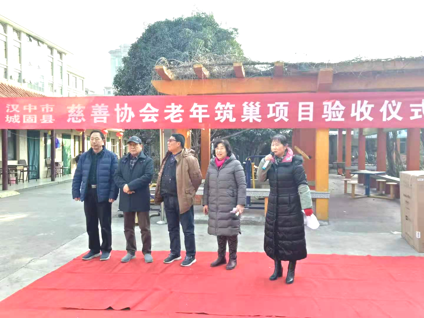 2020年12月31日上午,陕西汉中市慈善协会、城固县慈善协会组织的老年筑巢项目验收仪式在城固县松鹤老年公寓举行。市慈善协会会长刘润民、市慈善协会项目部部长高长富、县慈善协会会长王葆存出席会议,县慈善协会副会长张雪梅主持仪式。市、县慈善协会,松鹤老年公寓管理人员及部分老人共计80多人参加仪式。