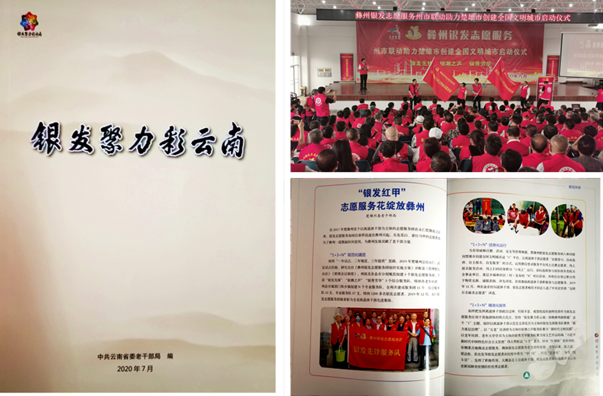 创新提质“彝州银发志愿服务”品牌。创新实践“彝州银发志愿服务”规范化建团、信息化运行、精准化服务3个“1+3+N”新体系,入选全省“银发聚力彩云南”工作案例,并聚焦中心工作创新制定实施《彝州银发志愿服务州市联动助力楚雄市创建全国文明城市志愿服务行动方案》,探索线上注册、线上报名、线下服务、线上扫码结算的“3线上+1线下”信息化规范化常态化管理模式,6月以来组织开展助力楚雄市创文创卫志愿服务活动28次、参与老干部志愿者446人次、累计服务时长4201小时、积分8.01万分。