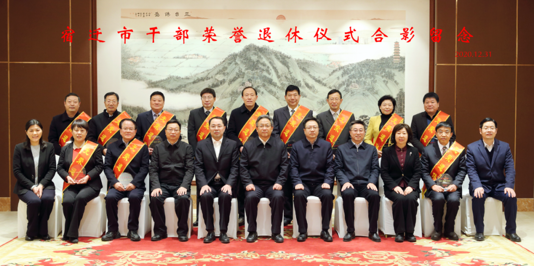 2020年12月31日上午,全市离退休干部先进集体和先进个人颁奖暨干部荣誉退休仪式举行,江苏宿迁市市委书记王昊,市委副书记、代市长陈忠伟,市委常委、组织部部长高飞等市领导会见宿迁受表彰的全国、全省、全市离退休干部先进集体和先进个人代表及2020年退休市管干部,并合影留念。