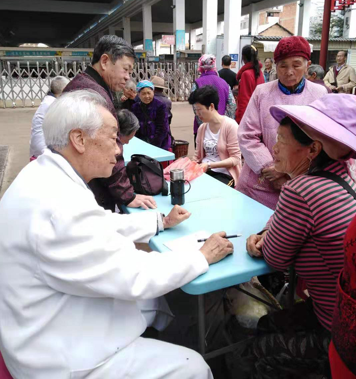 “我今天来赶街子,遇见老专家来这里免费看病,我最近肠胃不舒服,正想进城看病,你们来真是太好了!”一位农村老奶奶感动地说。在曲靖市麒麟区越州新田村,76岁的李树佃等12名老专家自愿成立服务队,利用越州赶集日,义务帮群众看病,老奶奶是他接诊的病人之一。李树佃退休前是麒麟区人民医院的老中医,医疗技术精湛,在当地很“有名”,找他看病的人络绎不绝,常常是一号难求。退休后,他主动和其他老专家一起参加了“送医下乡”活动,为农村群众开展医疗服务。义诊现场,老医疗专家们热情地为前来就诊的群众量测血压、血糖,讲解科普健康知识,让群众做到疾病早预防、早治疗。