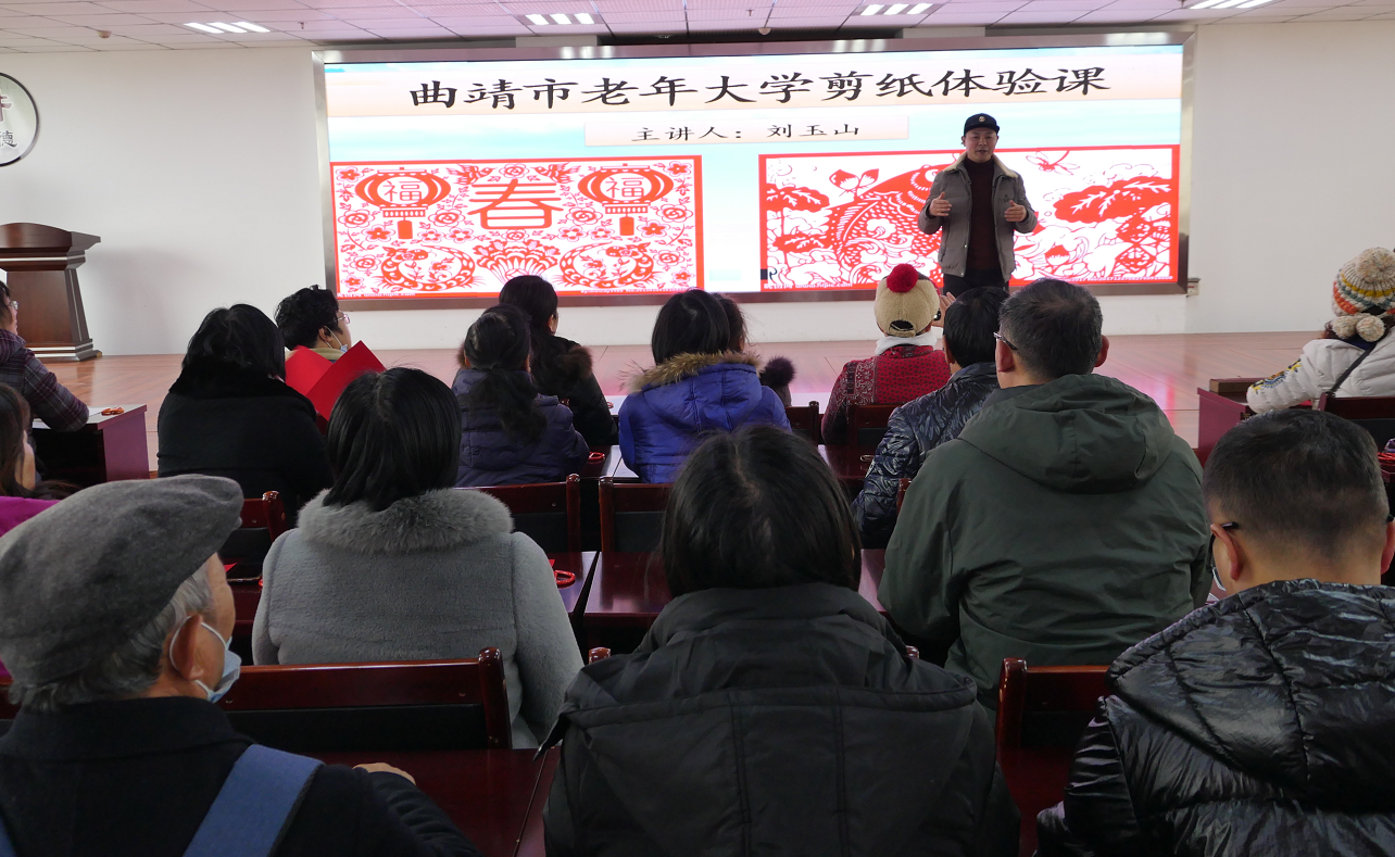 12月30日,曲靖市老年大学开展剪纸体验课,吸引了50余名老年剪纸爱好者前来体验。