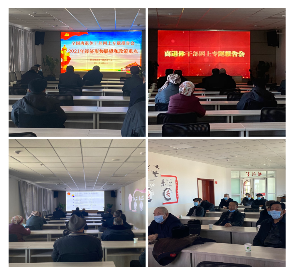 1月12日下午,中组部老干部局举办第四场全国离退休干部网上专题报告会。甘肃酒泉市阿克塞县老干部活动中心高度重视,精心安排,基于疫情防控常态化实际,第一时间下发会议通知,采取集中、分散等形式组织引导广大退休干部收看网上专题报告会。