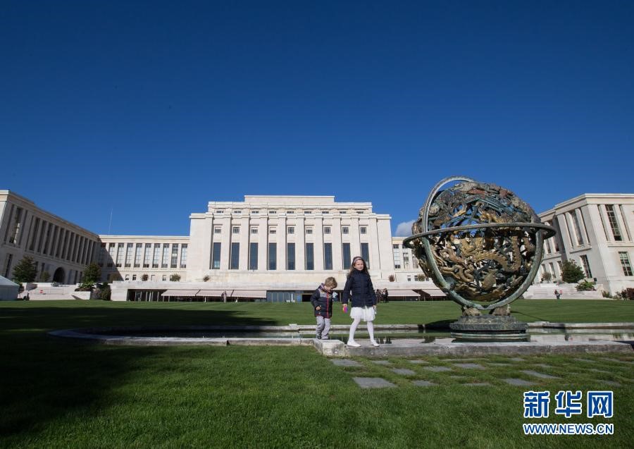 这是2017年10月7日拍摄的瑞士日内瓦的联合国万国宫的外景照片。新华社记者