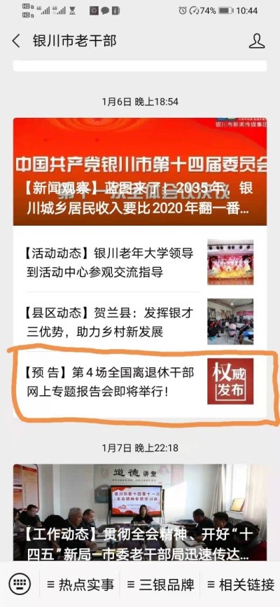 一是全面部署。银川市高度重视,迅速发文通知,要求各县(市)区离退休干部党工委、中心、大学、市直部门各党支部切实把此次活动作为离退休干部党员学习教育的重要内容,认真组织离退休干部党支部、离退休干部收看专题报告会。并通过微信公众号宣传,老年大学班级群、离退休党支部书记微信群在线通知等,确保网上专题报告会前期宣传通知全覆盖,引导老同志收看报告会。