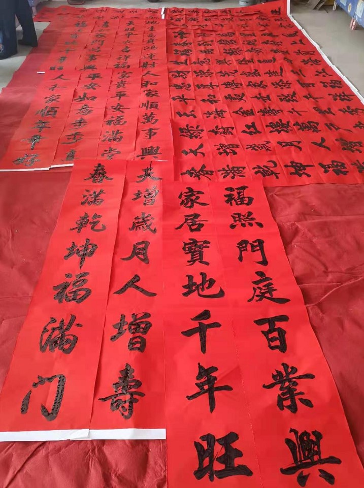 活动现场,老年书画研究会的书画家们铺台蘸墨,一幅幅对联、一张张福字,既增添了“年味儿”,又传播了正能量。此次活动书画家们共现场创作了绘画、书法作品及春联300余幅,为社区群众送去了新春祝福。吉祥如意的春联、红红火火的“福”字,寄托着人们辞旧迎新、接福纳祥的美好愿望,让社区居民欣赏书法艺术的同时,也营造出浓厚的节日氛围。