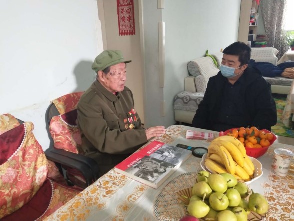 谢九叙老人1924年6月出生在北京怀柔县,1947年参加革命工作,1948年5月加入中国共产党。曾参加过南湾战斗、解放隆化战役、抗美援朝战争,荣获表彰7次。谢九叙老人离休后,一直注重政治学习,关心国家大事,特别是认真学习习近平新时代中国特色社会主义思想、党的十九届五中全会精神和第三次中央新疆工作座谈会精神,看到祖国发生日新月异的巨大变化,感到非常振奋。