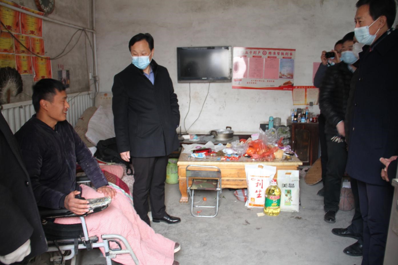 在慰问活动进行中,市老干部活动中心首先为贫困群众们送去大米、面粉、食用油等慰问物品,接着对辖区内的20户困难群众进行了逐户走访。每到一家,王主任都详细询问、了解他们的需求和困难,告诉困难群众要坚信党的领导、相信国家扶贫政策。鼓励他们勇于面对生活,克服困难。