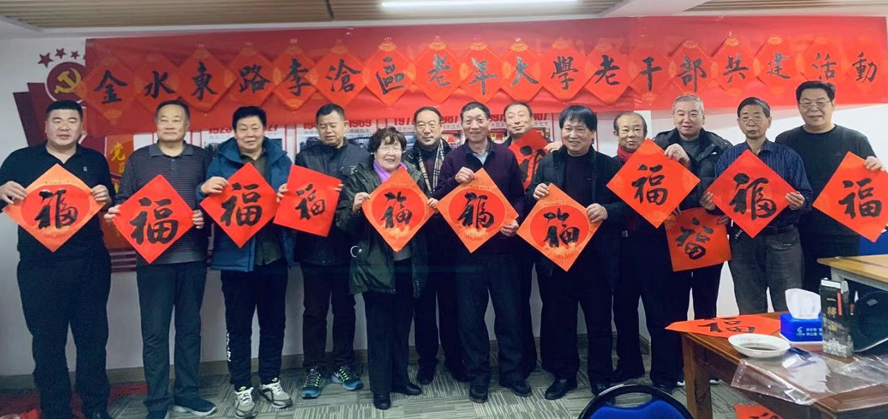 1月19、21日上午,青岛李沧区老年大学书画系党总支组织金秋书画院部分院士和学员志愿者先后到共联共建单位李村街道东山社区、世园街道金水东路社区开展为居民送福送春联活动。