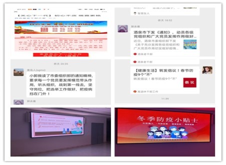 县关工委积极引导“五老”人员,时时关注“离退休干部工作”“甘肃老干部”“酒泉老干部”“阿克塞老干部之家”等微信公众号,每天按时向老同志推送相关链接,让大家及时了解中央和省市、县委的方针政策和疫情工作部署,坚定防控防疫信心。向全县“五老”人员转发“关于春节防疫9个‘不’”的倡议,号召老同志们争当监督员、防护员、宣传员,积极参与,主动防控,不松懈、不隐瞒、不聚集、不传谣、不轻信、不硬闯、不冲动、不慌乱、不侥幸,以实际行动助力全县疫情防控阻击战,利用LED显示屏播放、推送官方发布的关于新冠肺炎疫情防控的知识和常识。