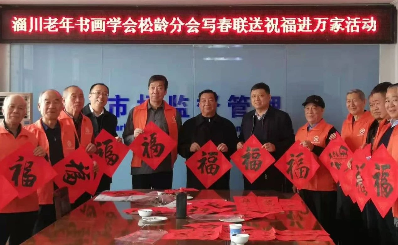 在新春佳节来临之际,淄博淄川区组织老干部书画志愿者开展“写春联送祝福进万家”活动走进淄川区市场监管局。