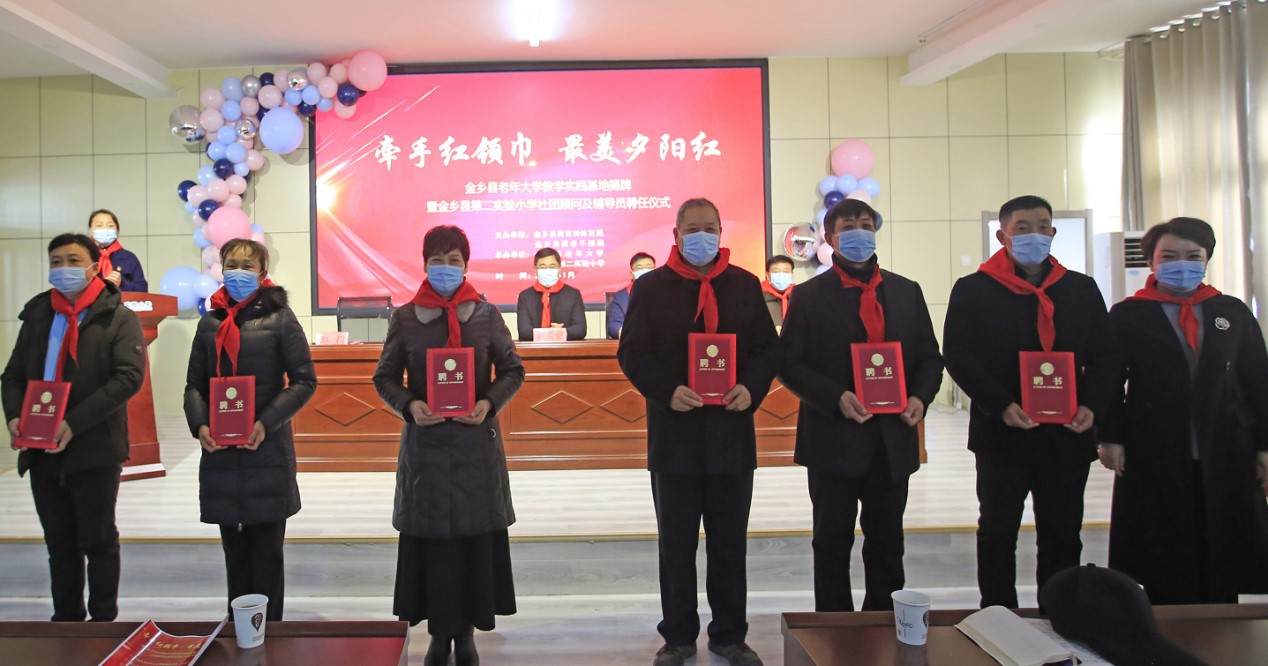 1月13日,济宁金乡县老年大学首个教学实践基地揭牌仪式在金乡县第二实验小学举行。县委组织部副部长、县委老干部局局长、县人力资源和社会保障局局长赵保银,县教育和体育局局长刘宗占出席活动并为基地揭牌。县老年大学、县实验小学集团相关负责人和两校师生参加活动。