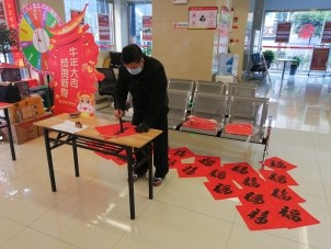 春联是喜迎中国新年、迎新纳福、喜庆祥和的传统习俗之一,也是弘扬中国优秀文化的一种表现方式。1月25日至1月31日,云南安宁市老年大学组织部分书法班学员开展文化惠民义写春联活动。这不仅是安宁市老年大学弘扬传统文化、服务市民的一张“名片”,也是与安宁市农村信用联社、鑫湖医院携手多年的主题公益活动。今年,根据昆明市、安宁市疫情防控常态化的要求,为了减少市民聚集领春联的现象,既做到疫情防控措施落实到位,又做到为民服务不停步,安宁市老年大学改变往年组织活动邀请书法班学员义写春联的方式,变为联系他们分别在安宁市农村信用联社、鑫湖医院等地完成书写春联,然后由有关单位集中领取,分发给市民。