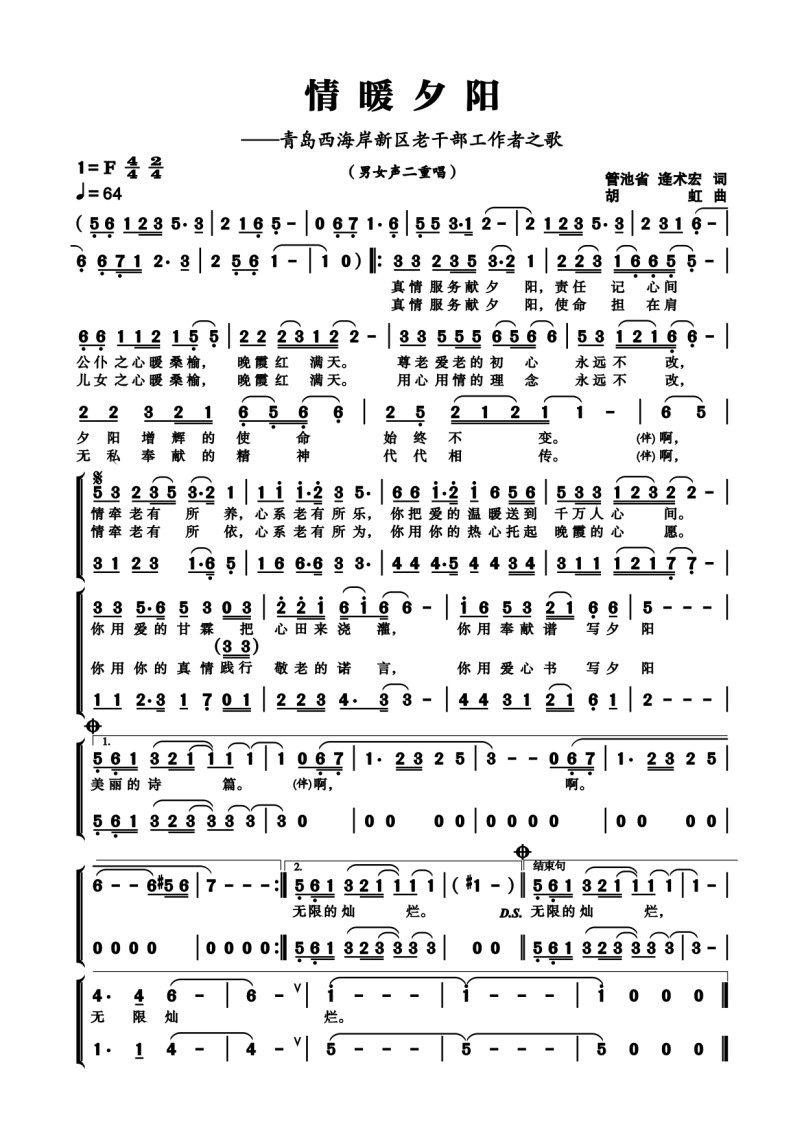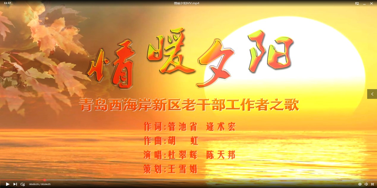 为宣传和展示青岛西海岸新区老干部工作的理念和工作方针,激发老干部工作者为老干部工作事业锐意进取,不断拼搏的正能量,激励老干部系统党员干部不忘初心、牢记使命,树牢“四个意识”、坚定“四个自信”、做到“两个维护”,打造新时代老干部工作宣传的一张新名片,经过一年多的创作,近期,青岛西海岸新区工委老干部局正式发布了青岛西海岸新区老干部工作者之歌MV《情暖夕阳》。