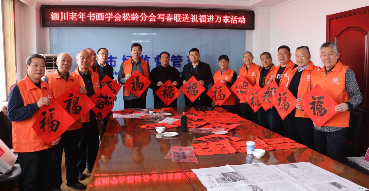 截至农历腊月十六,已经为群众写送春联16700余副,赠送“福寿”字9800余个,参加活动会员达600余人次,受赠单位160余个,受赠群众16000余户。