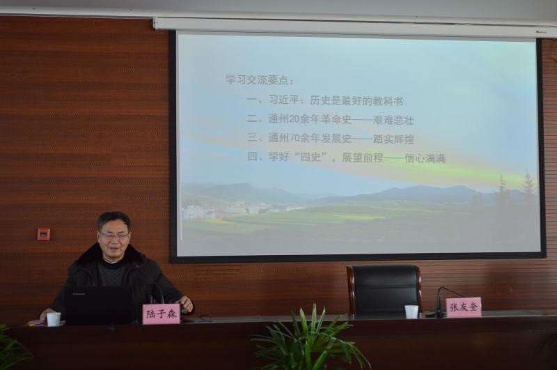 陆子森围绕“迎庆中国共产党建党100周年”主题,从习近平总书记系列重要论述引入,以通州本地20余年革命史、70余年发展史为主线,对比国内国际大环境,引导在场党员学好“四史”,展望未来。当日,共有50多名党员聆听陆子森讲党课,参与听课的老党员表示:“陆校长用大量图片和数据为我们讲解了发生在本地的革命故事,这样的党课带入感更强,加深了我们对党史的理解;将国内外最新的时政内容融入讲课,还加上本地发展的新成就,这样纵横对比更接地气,让我们对党的领导信心满满,对第二个百年目标发展前景充满期待。”