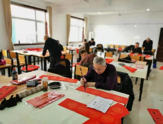 寒风刺骨,挡不住人间真情!新春来临之际,为了给仍穿梭在大街小巷的环卫工人送去新春的温暖和祝福,做好对基层一线群众职工的关心关爱工作,1月28日,聊城冠县老干部局组织老年大学书法班师生到环卫服务中心开展“幸福进万家”送春联活动,为环卫工人写春联送祝福。