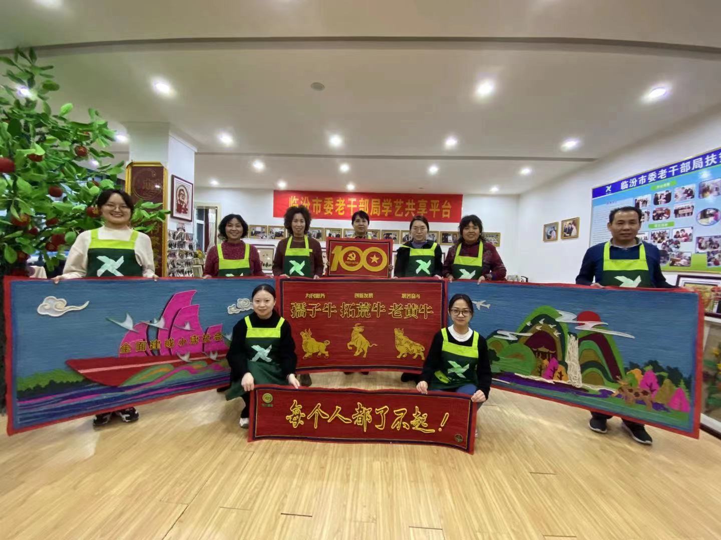 花开万朵,风卷细浪。从做公益到建平台,再到推广,临汾草编学艺共享平台目前已建立了13个,举办培训110期,参与群众达7000余人,培养骨干200余名,先后被评为“市级人才基地”“临汾市人才工作基地优秀单位”,成为全市人才培训的一大亮点。前来参观学习的各界人士络绎不绝,平台至今已接待省内外200批次近5000人次,先后承接了全省老干部工作现场会和全省社区大学现场会。至此,我市草编扶贫走上正轨,进入了发展的快车道。