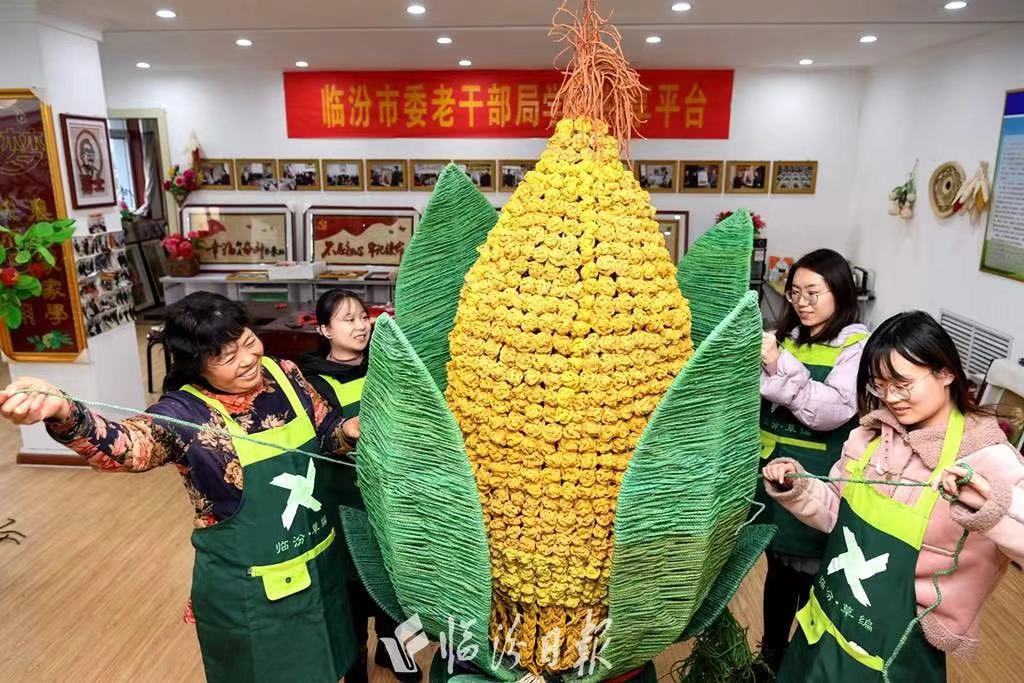 日前,在山西临汾市委老干部局草编学艺共享平台基地,一颗用玉米皮编织的作品——“丰硕玉米”,格外引人瞩目。临汾草编产业协会的会员们正在观看获奖视频《指尖编出幸福路》,并为协会荣获“世界乡村复兴大会首届大会奉献奖”“山西省干部驻村帮扶工作模范单位”欢呼雀跃。