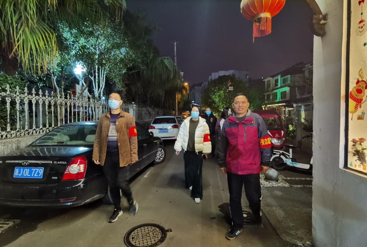 二是打好“防控牌”。通过“网格+志愿者”形式,发挥单位联动优势,重点组织“平安夜巡”活动,与社区网格员联合开展区域巡逻、网格协查、“小门”防疫管控,共同维护好社区平安。
