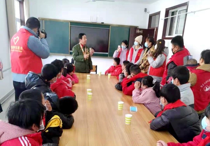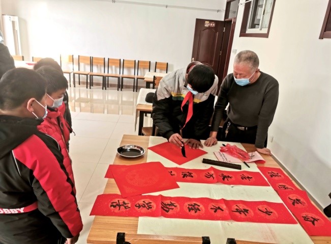 本次活动在县老年大学举行。对越自卫反击战一等功老战士张宝军,展示了珍藏多年的黑白照片,结合亲身参战经历讲述红色故事,与老英雄的互动让孩子们深受鼓舞;孩子们还与“五老”志愿者共同进行春节的传统文化项目——写春联,气氛一片祥和。随后,大家在演播厅观看了红色经典电影《英雄儿女》,再一次感受到今天的幸福生活来之不易。活动最后,根据孩子的“微心愿”,为每一名学生准备了新年礼物,送去了新春的祝福。