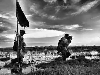 政委命令扛着青稞炒面的战士快速过河,并迅速散开,把干粮袋分发给正在酣睡的战友,一面发还一边玩笑地推推:“喂,醒来哟,吃早饭哩!”“别睡了!快出草地了!”