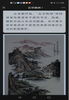 举办一次迎新春“银秀芳华”云展示活动。整合区老年大学、区老干部活动中心资源,通过本局公众号“五华枫林”举行离退休干部书法、绘画、摄影作品以及诗词朗诵云展示活动。活动开展以来,极大鼓舞了五华区离退休干部的创作热情,收到书法、绘画和摄影作品近百幅,充分展示出五华区离退休干部深厚的文化底蕴、饱满的创作热情和扎实的艺术功底,更体现了广大离退休干部感党恩、添正能的家国情怀。