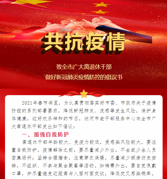 为落实黑龙江省委、齐齐哈尔市委和讷河市委抗疫防控要求,讷河市老干部服务中心第一时间作出响应,明确责任,多措并举,动员鼓励全市离退休干部为坚决打赢疫情防控保卫战作贡献。