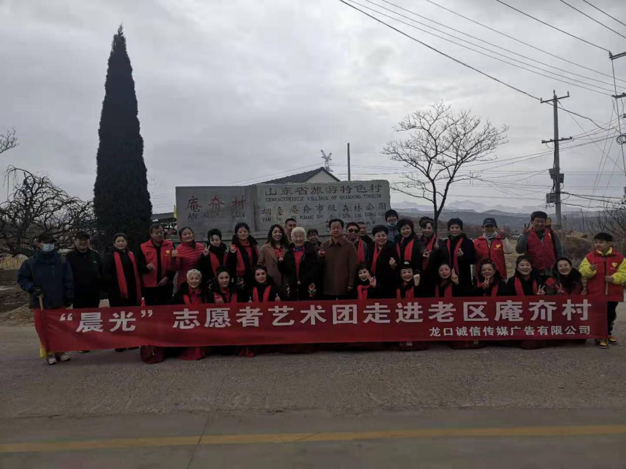 乍暖还寒的春日,天公并不作美,淅沥沥地小雨淋得又冷了几分。但是,气候不暖人心暖,2月28日,烟台龙口市晨光志愿者艺术团的60多名队员驱车20多公里走进龙口老区庵夼村文化公益慰问村民的日子。她们要在这倒春寒的时日,用她们炽热的爱心和热烈的激情,温暖每一个村民的心;在即将迎来的“学雷锋日”之前,他们以自己的实际行动践行雷锋精神,用心帮助每一个需要帮助的人。