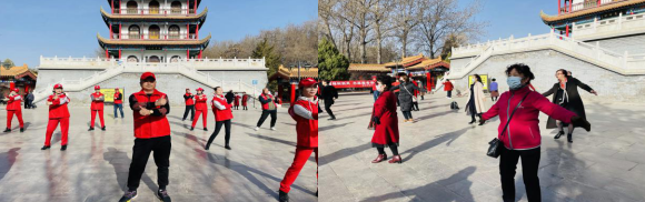 3月5日上午,在万物复苏的中山公园,一抹“志愿红”成为当天最美的风景线。走近文昌阁小广场,远远就看到“银耀银川”老干部活动中心的阿姨们正在踩着欢快的节奏,在那里载歌载舞。旁边散步聊天的居民们也受到他们的感染纷纷参与其中,有人还充当起了“志愿教师”的角色,他们相互指导动作,活动现场互动频繁。