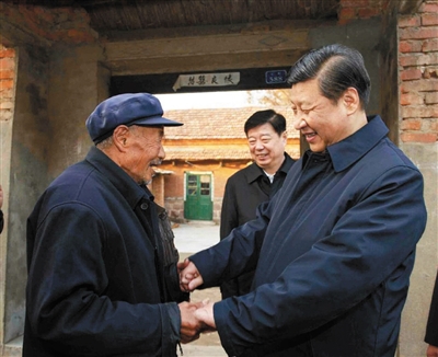 习近平来到临沭县曹庄镇朱村“老支前”王克昌家看望。一家人干农活做柳编,日子“基本奔小康”。总书记说,我们这一代、下一代都要沿着中国特色社会主义道路向前,让老区人民生活得更幸福。喜欢看电视的老人插话:“总书记讲话我天天听。”习近平说:“请你批评指正。”