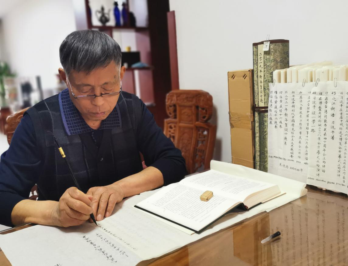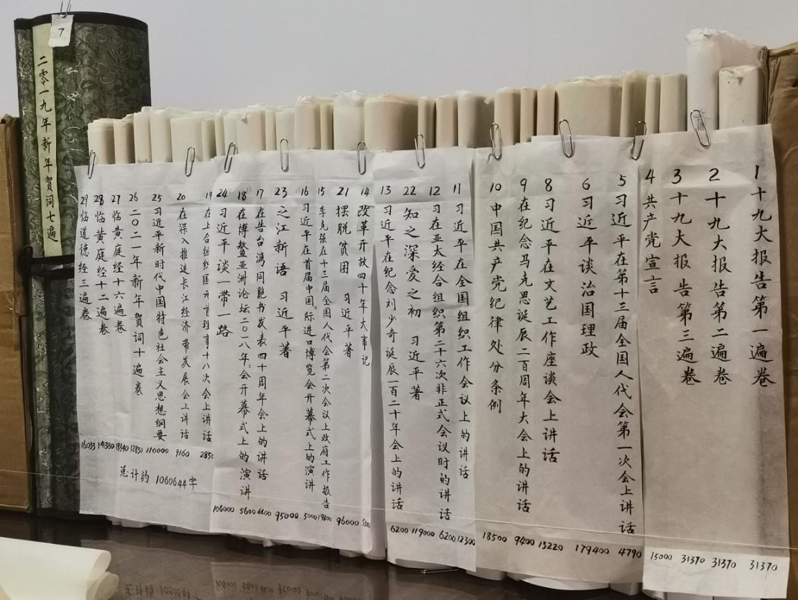 2019年习主席新年贺词发表后,他便开始书写50万小楷用以庆祝建国70周年。书写中,党为人民服务的宗旨鼓舞着他。如今,他调整书写计划,挑战百万小楷迎接党的百年华诞。