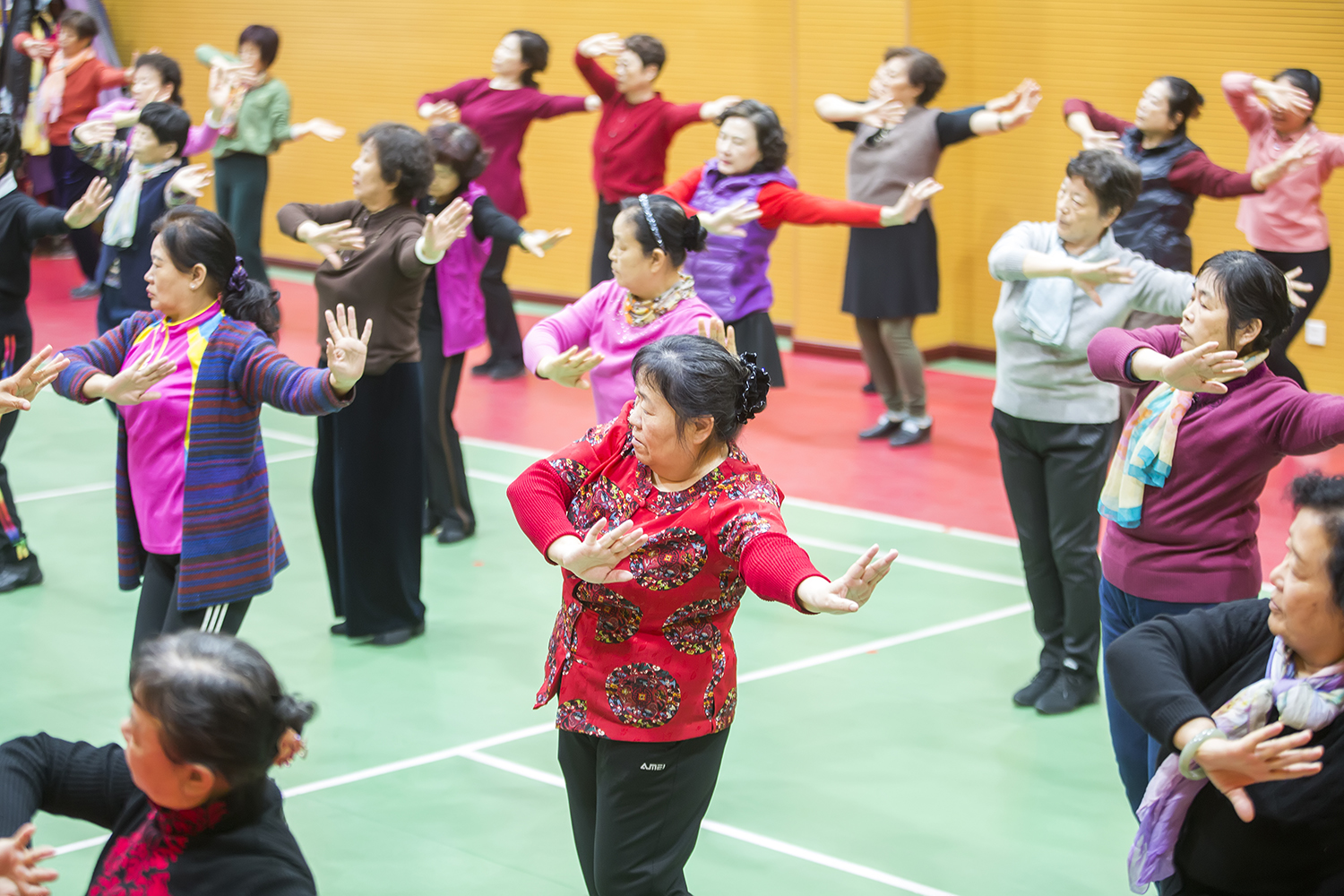 综合排练厅里,舞蹈骨干培训正进行的如火如荼。老干部舞蹈爱好者通过兴趣小组微信群进行网上报名预约,参加为期5天的舞蹈骨干培训。偌大的排练厅被占的满满当当,大家仔细聆听动作讲解,细心观察老师示范,认真排练舞蹈动作, 举手投足间是满满的精气神儿和一颗永不服老的心。