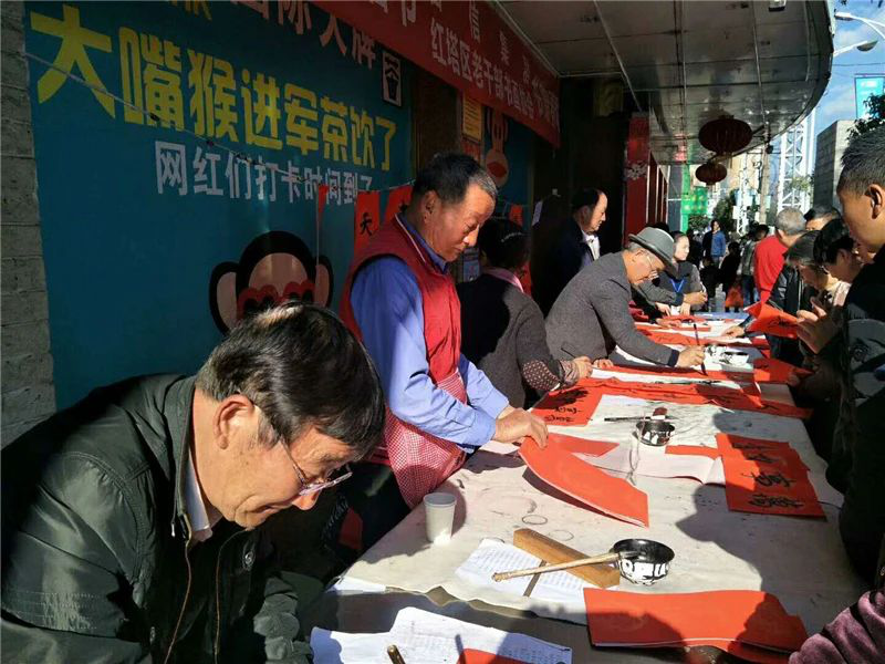 “我们的目标是用文化凝聚人心,以书香滋养心灵,更好地建设基层文化,让老百姓受熏陶受教育。”这是红塔区老干部书画协会近400名会员的一个共同愿望。协会大部分会员都是退休后才开始学习书画的,年龄最大109岁,80多岁的在协会被称作“小年轻”,他们努力学习,苦练技艺,不仅丰富自己,更为社会传递正能量。他们致力于服务社会,绽放生命之花,春节为群众书写春联寄语来年,重阳节写寿送福祝愿安康,年均8000多幅,平时为百姓写家训,促进家庭和谐,组织会员义卖作品,善款捐赠白血病患者,创作米线节系列绘画作品并成为《哇家米线》一书的插图,为红塔区创建诗词楹联示范区打造文化示范园。他们致力于浸润书香,支持基层文化建设,捐赠书画作品626件,打造九龙公园诗词楹联景点“雅集轩”,支持高仓街道建立“雷跃龙纪念室”,协助大营街街道建立“李鸿祥将军纪念室”,完成连环画《铁面御史陈表》的创作和《重修陈公祠碑记》,用楹联书法作品装点“陈表纪念室”,现场创作支持“玉溪市第一党支部”红色教育基地建设。为全区十余个社区、老年活动中心、小学、驻军捐赠书画作品400余件,红塔区随处可见协会会员的优秀楹联和书画作品。