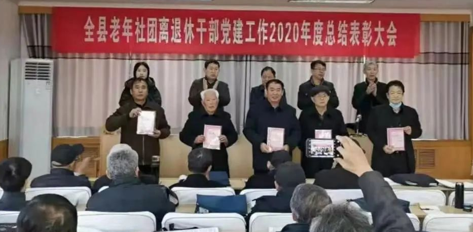 会议对县老年社团2020年离退休干部党建工作进行了总结。一年来,县老年社团认真贯彻落实了十九届四中全会和全国、全省老干部局长会议、全市老干部工作会议精神,探索创新老干部工作制度,推广实施离退休干部党支部书记70周岁荣誉离岗制度,先后有4位老年社团离退休干部党支部书记荣誉离岗,增强了离退休干部党支部的战斗力、组织力;打造了狮子楼街道顺发社区老干部工作示范点石佛镇康居社区老干部工作示范点,推进了离退休干部党建工作融入基层党建大格局进程。开展“星级支部”创建活动,评出了5个“五星级支部”、15个“四星级支部”和4个“三星级支部”,激发了各社团离退休干部党支部创先争优的积极性。开展了“听党话 跟党走 颂党恩”“我看脱贫攻坚新成就”“向李勤田同志学习”“迎国庆、庆中秋”“纪念毛泽东同志诞辰127周年”“迎新春·万幅副春联进村入户”等主题党日活动,强化了离退休干部党员党性意识。组织24个乡镇(街道)老年社团离退休干部党支部观摩交流,取长补短,互促互进,营造了“比学赶超”的干事创业氛围。