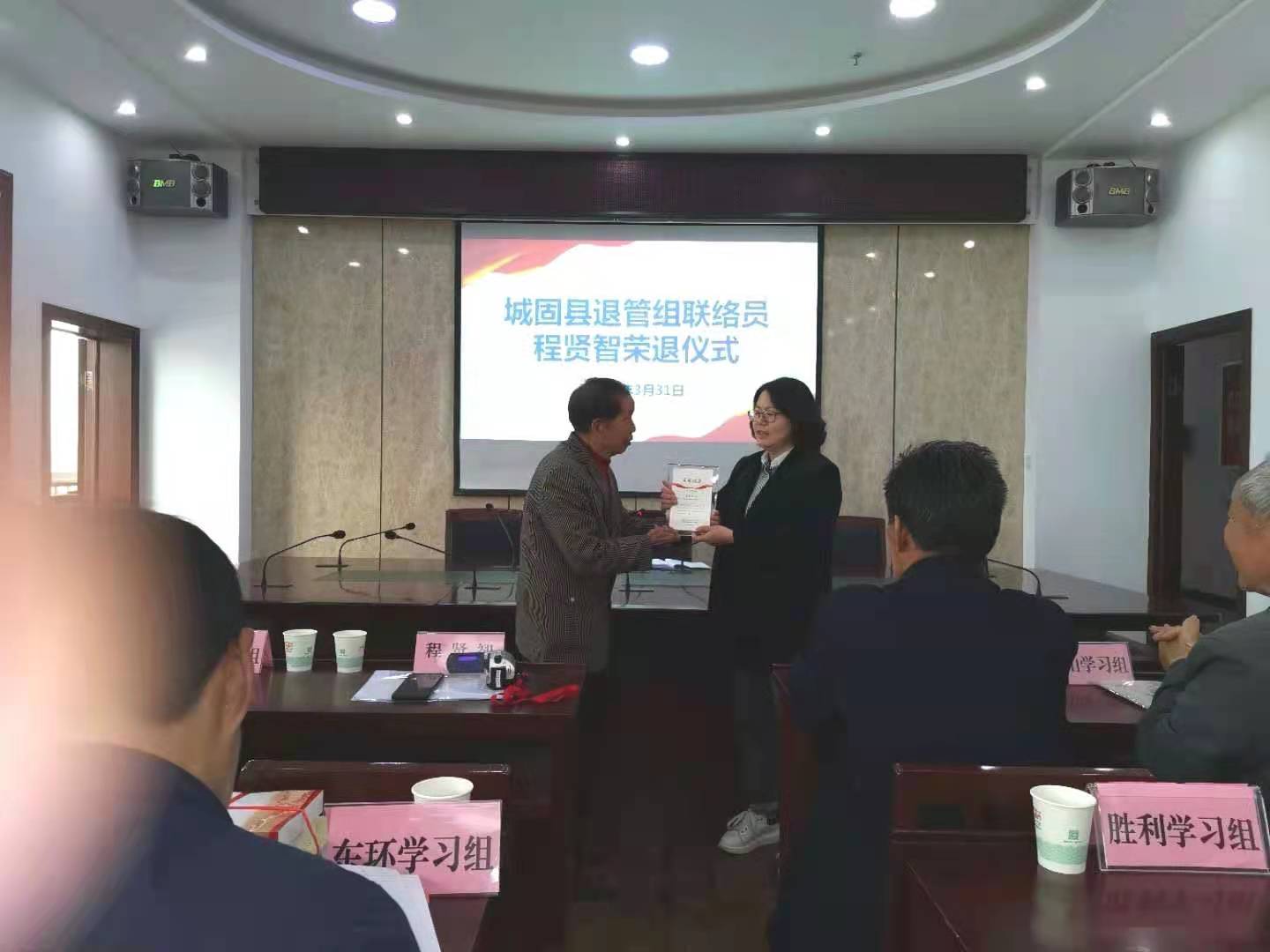 3月31日,陕西汉中市城固县人力资源和社会保障局、城固县退休退职干部工人管理所为退休自管学习组联络员程贤智举办荣退仪式。
