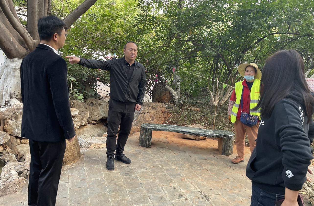 据悉,小公园的大改变源于3月17日市委老干部局周俊同志带队到广文社区实地察看创建文明城市网格责任区并现场督办的成果。聂耳故居公园的环卫工人反映,因条件限制,公园活动的群众经常用纸箱搭建临时桌子,并将纸箱塞入绿化带内以便后续使用,既影响公园景观,又威胁植物生存,且多次劝说无果,让管理人员很是头疼。周俊同志现场督办,带领市老干部活动中心研究处理,决定添置桌椅为市民文明活动提供便利。在多方考察、精选石桌、科学选点的基础上,市老干部活动中心仅用两天的时间,便完成了3套石桌的安装使用。