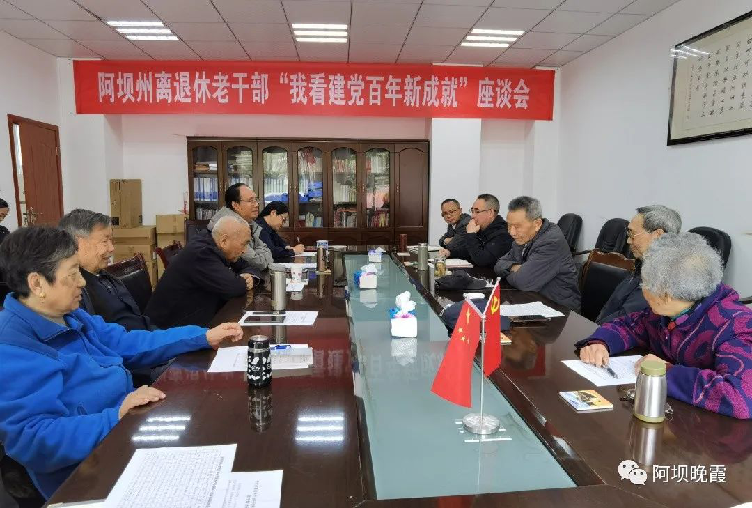 座谈会上,离退休老干部结合自身的工作和生活体会,争先恐后踊跃发言,分别从阿坝州的灾后重建、文化教育、交通发展、脱贫攻坚、疫情防控、民族团结、全域旅游、乡村振兴等方面,生动讲述了建党百年来阿坝发生的巨大变化;畅谈中国共产党成立以来,团结带领全国人民实现从站起来、富起来到强起来的光辉历程和伟大成就。特别是党的十八大以来,以习近平同志为核心的党中央领导全国人民取得脱贫攻坚和抗击新冠肺炎疫情的伟大成就,阿坝州城乡面貌焕然一新,人民生活水平大幅提高,国家经济实力持续增强,全面从严治党深得民心,民族凝聚力和自豪感显著增强,充分体现了中国共产党的坚强领导和社会主义制度的显著优势。