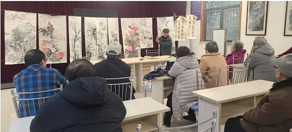 在桃浦镇同济沪西“社区离退休干部之家”,开展了著名画家、上海中华书画协会秘书长范庆天与离退休老同志“书画进社区”主题交流活动。范老师教授老同志国画布局、用色、国画文化等知识,满足老同志精神文化需求。