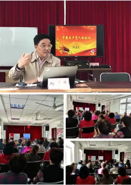 普老“四史”宣讲团邱浩庆在宜川路街道华阴居民区社区离退休干部之家为居民区党员宣讲《中国共产党人的初心》。邱老师用生动的案例,结合时事热点,以史鉴今带领大家重识共产党人的初心,激励党员不断在社区、楼组发挥正能量,让更多的人感受到中国共产党员的初心与使命。
