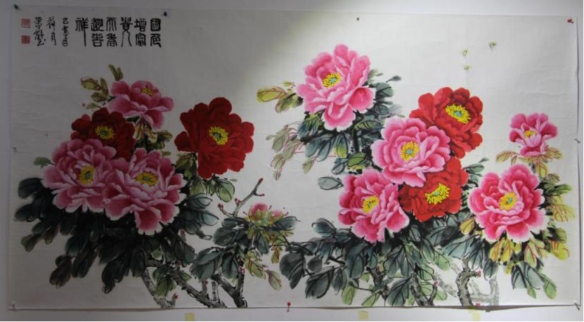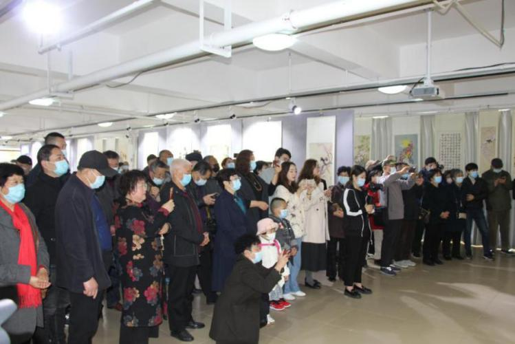 他的意愿,得到区老年大学大力支持,派人联系文化馆落实场地、协调有关人员参加等。仅用了两周时间,书法、花鸟、人物、篆刻等100多幅作品布展完成,书画展如期举办。