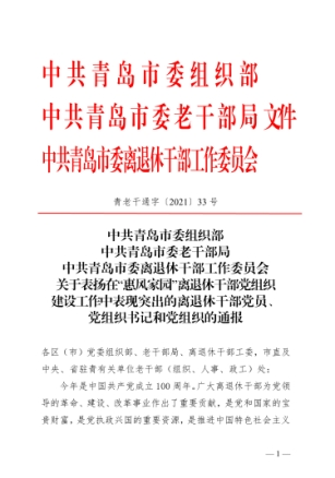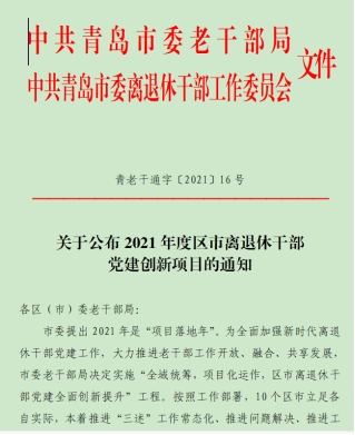 近年来,青岛市委老干部局认真落实习近平总书记对老干部工作的重要指示要求,积极践行新时代党的组织路线,立足退休干部管理和离退休干部党建工作现状,加强研究、吃透实情,找准问题、有的放矢,体系化推进、制度化保障,项目化实施、特色化展现,打出组合拳,追求大成效,开创离退休干部党建工作新局面。