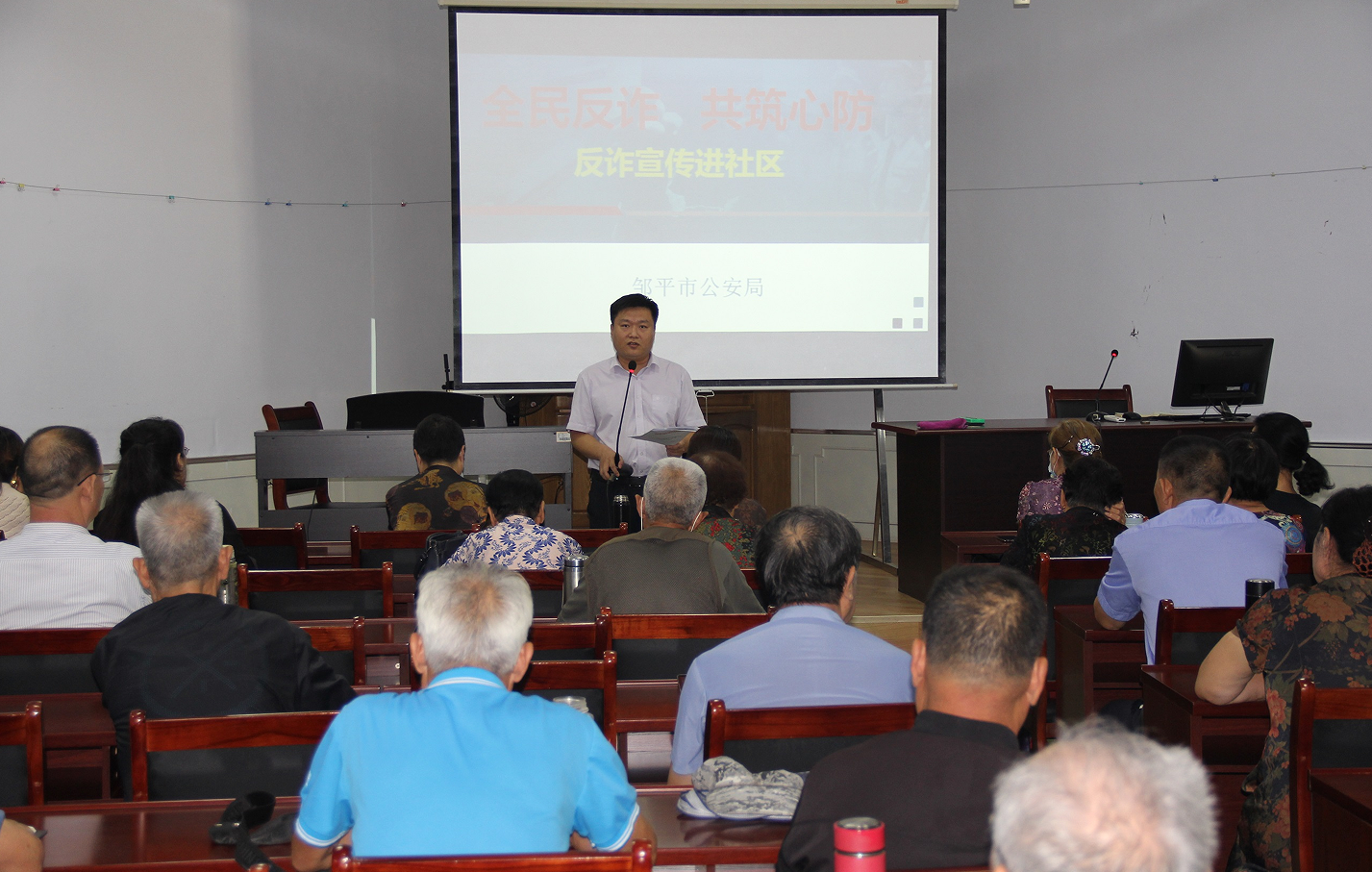为提高老年人自我防范意识,避免电信诈骗,充分发挥退休老干部在社会中带头模范作用,在保护自身财产安全的同时,积极融入邹平市群防群治队伍,共同构建平安建设为民服务“同心圆”工程。邹平市老年大学联合市委政法委和市公安局于9月10日在多功能教室开展了邹平市群防群治“同心圆”工程退休职工队伍培训会。
