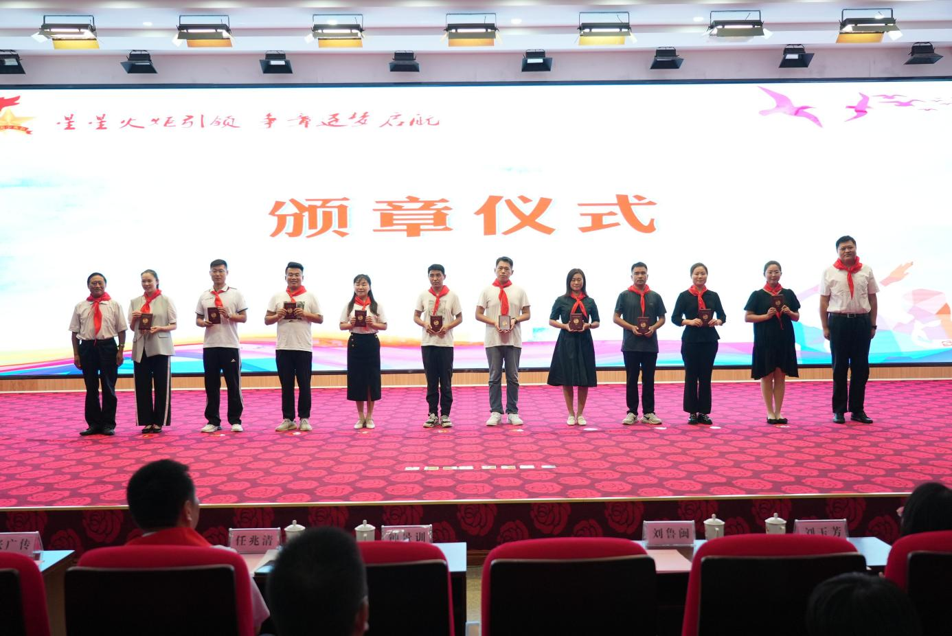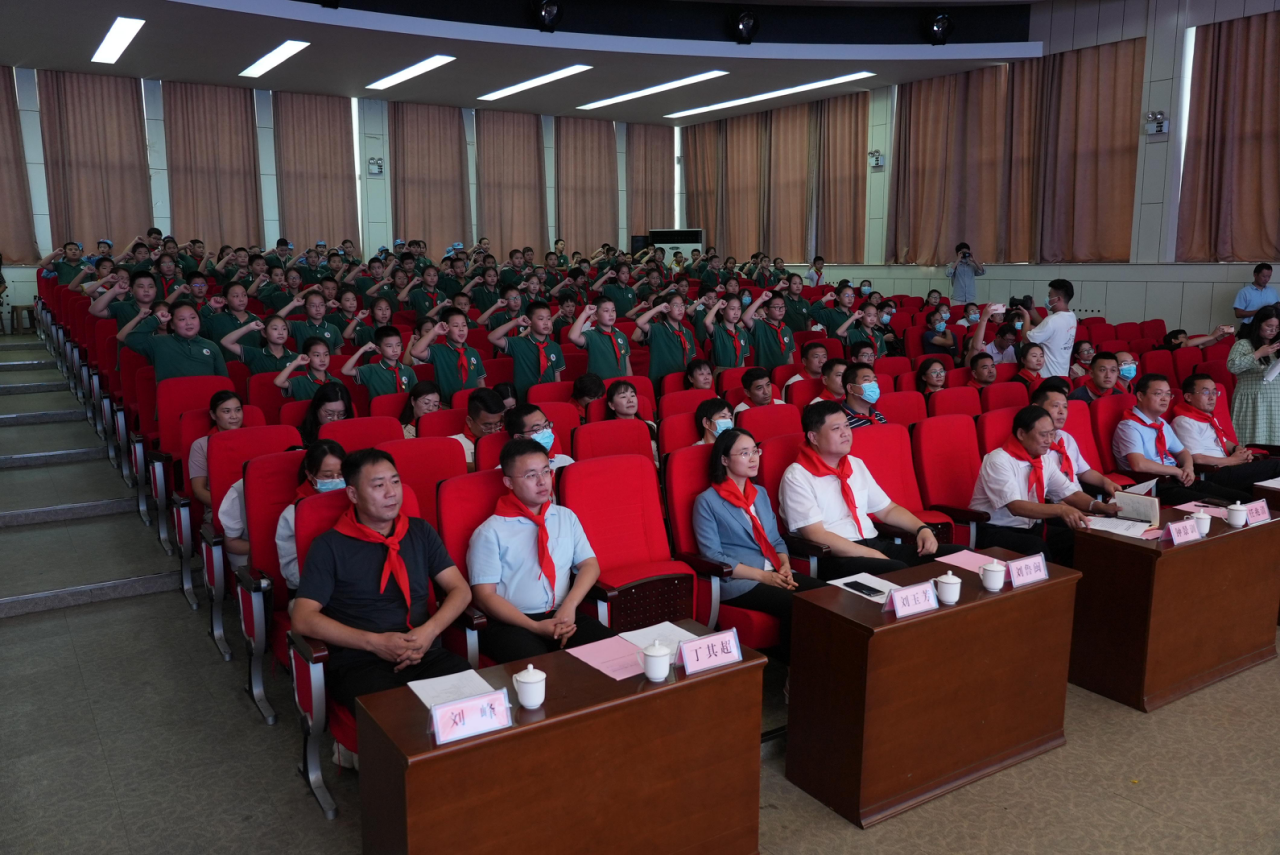仪式上,少年队员齐唱《中国少年先锋队队歌》,县教育局党组副书记张广传宣读《关于广饶县2020—2021学年度“红领巾奖章”二星章集体、个人的通报》,颁发奖章,团县委书记丁其超介绍全县少先队党史学习教育情况,县关工委主任钟景训作了讲话。