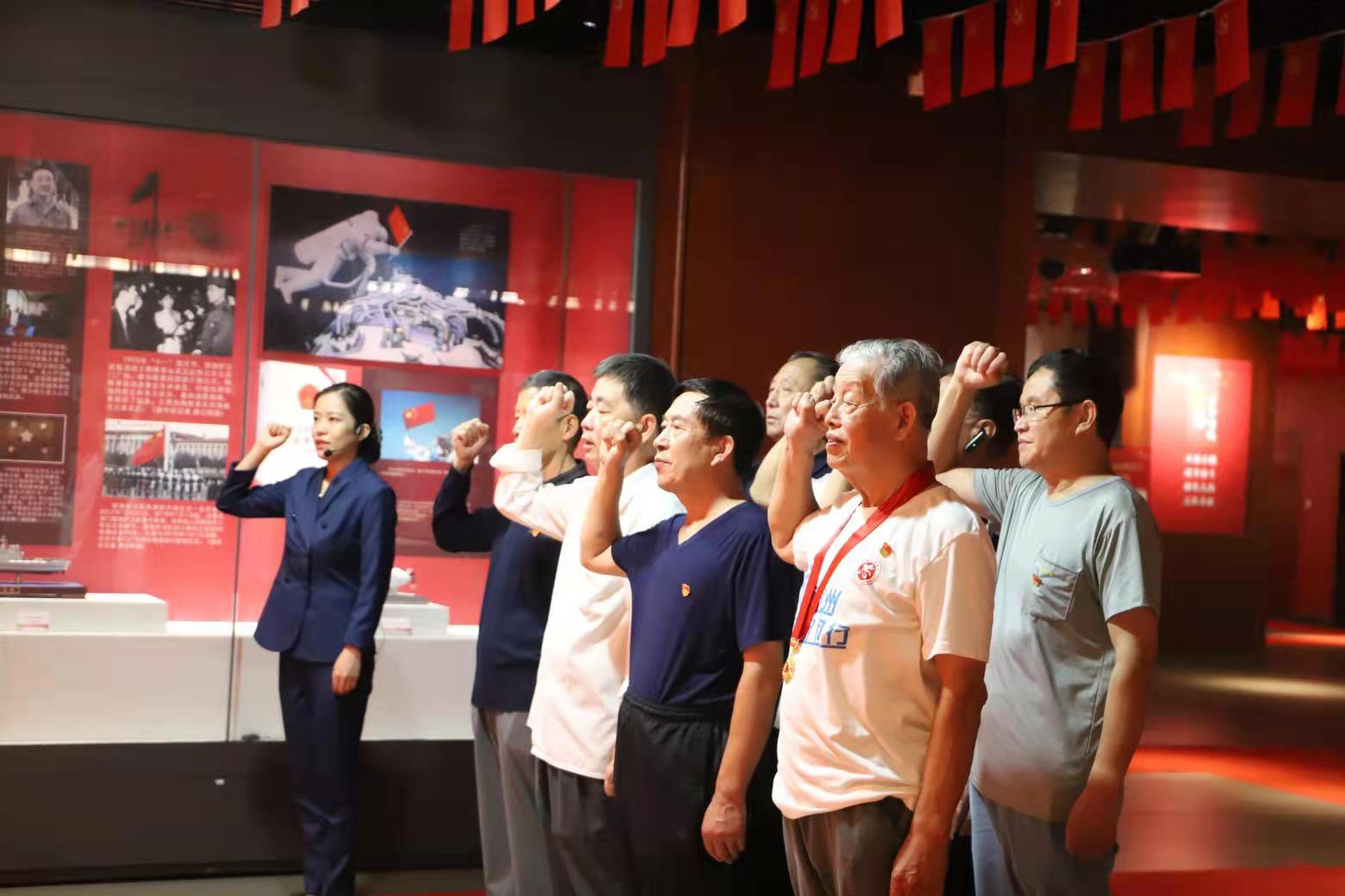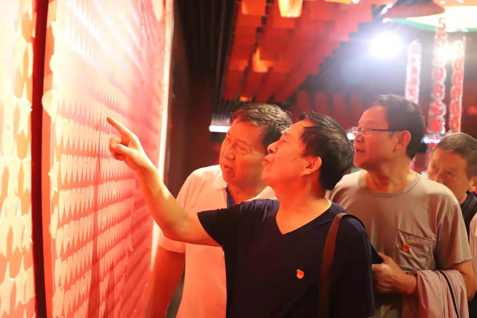 在鲜红的党旗前,老干部们重温入党誓词,不忘初心使命;在珍贵的史料前,大家按动快门,记录所观所学;在引发共鸣的展览前,老干部们热烈讨论,抒发所思所感。