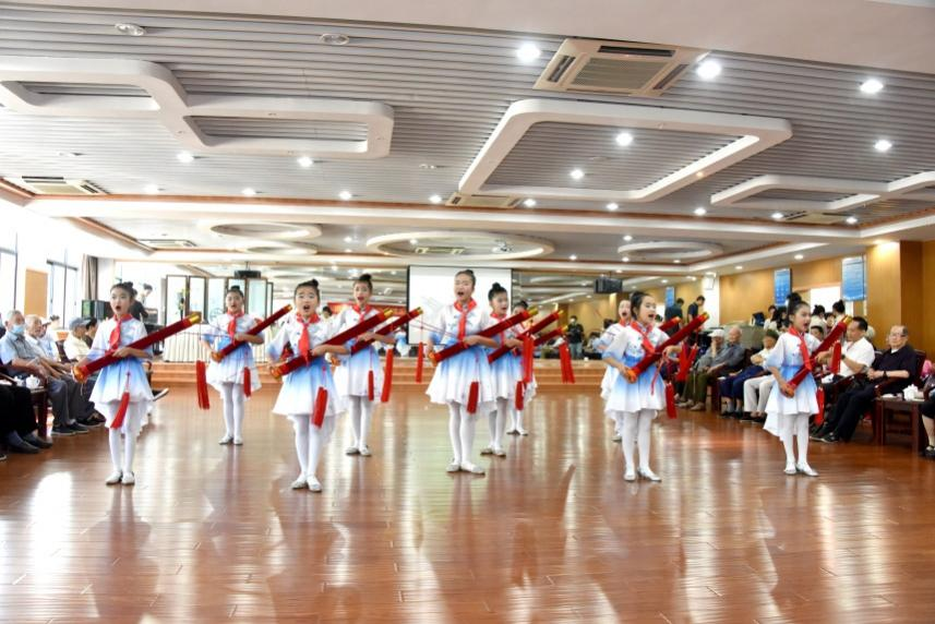 活动中,来自艺术学校、实验小学、工商学院等学校的学生献上精彩的文艺演出,国贸学校的师生现场为老同志制作手工茶点,并进行茶艺表演。离退休干部互致节日问候,畅谈美好生活,在演出中交流感情,联络友谊。