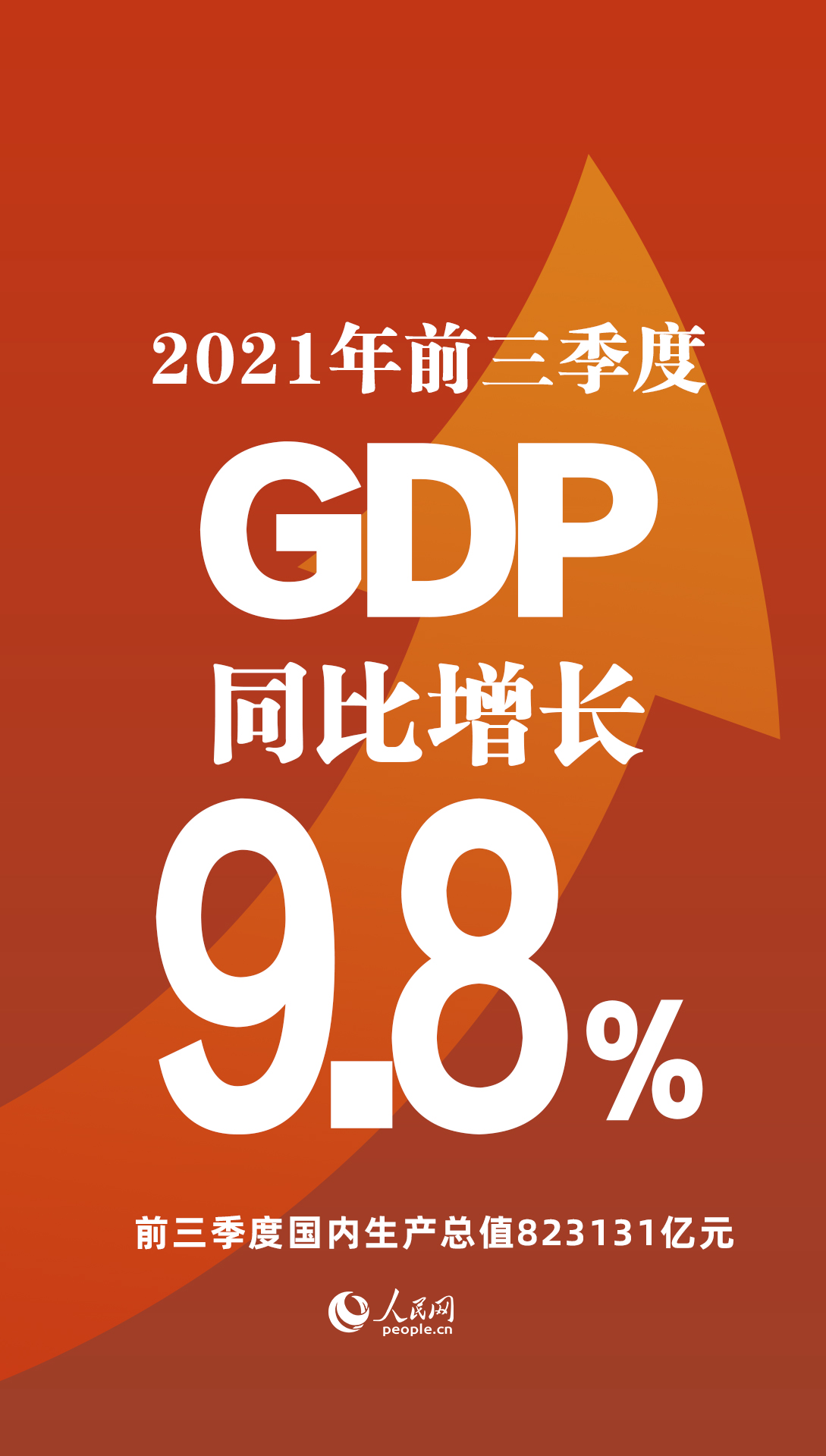人民网北京10月18日电 (申佳平)今日,国家统计局官网发布2021年前三季度国民经济运行数据显示,初步核算,前三季度国内生产总值823131亿元,按可比价格计算,同比增长9.8%,两年平均增长5.2%,比上半年两年平均增速回落0.1个百分点。分季度看,一季度同比增长18.3%,两年平均增长5.0%;二季度同比增长7.9%,两年平均增长5.5%;三季度同比增长4.9%,两年平均增长4.9%。